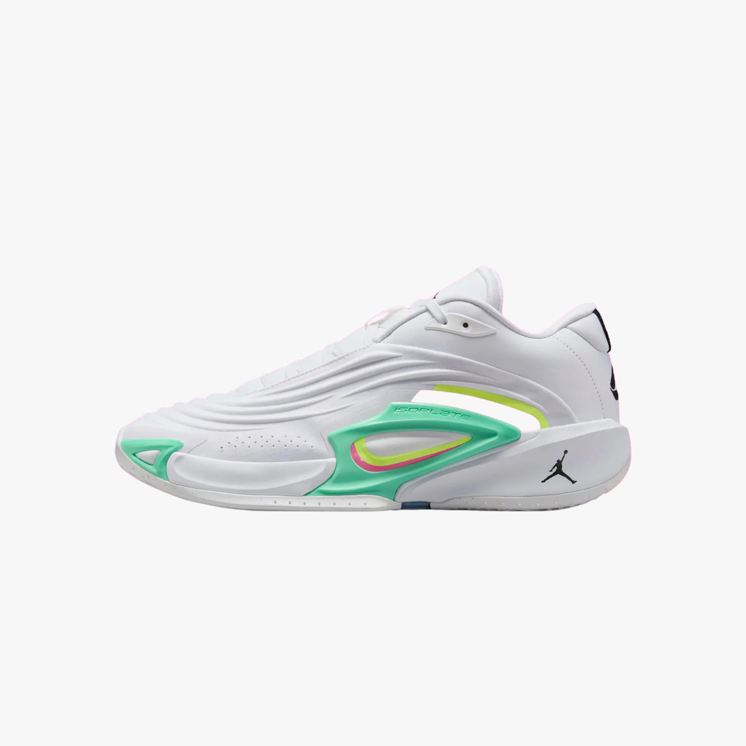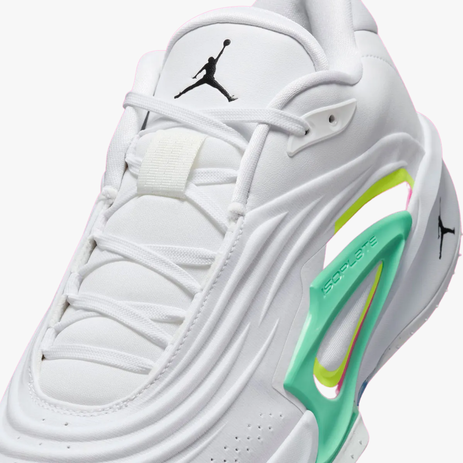 L'edizione Jordan Luka 3 "Photo Finish" presenta una colorazione pulita e vivace, con una base bianca accentuata da dettagli neri, volt glow e verdi glow. Questa combinazione crea un look sorprendente che incarna l'intensità degli ultimi momenti di una gara, in linea con il nome "Photo Finish". La scarpa incorpora innovazioni prestazionali come la tecnologia Isoplate migliorata per una maggiore stabilità laterale. La tomaia è realizzata in un tessuto tecnico, che offre traspirabilità e supporto. La suola presenta un motivo ispirato agli pneumatici da corsa, garantendo un'aderenza eccezionale in campo.
